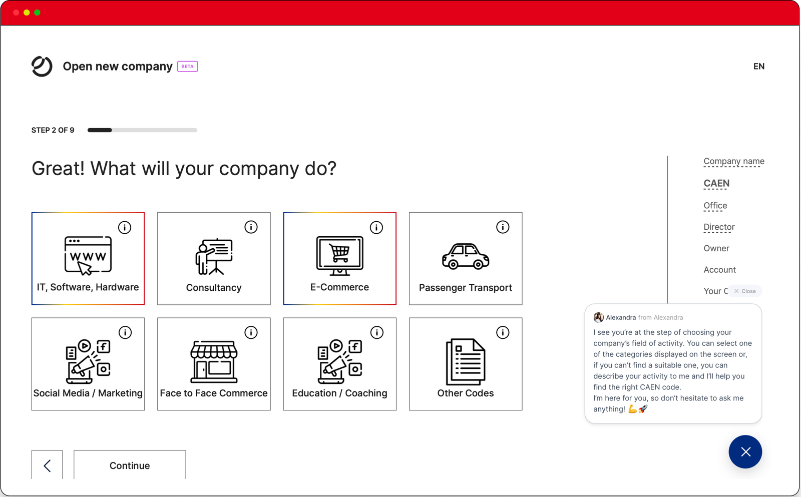 Decide on the CAEN codes that best represent your company's operations, laying a clear foundation for the services you'll offer.