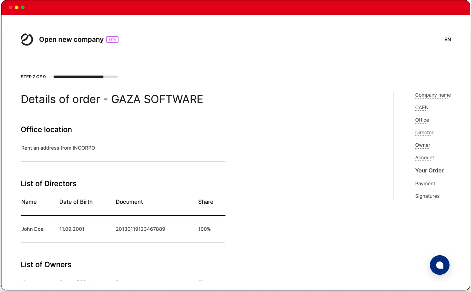 Double-check the details of your company registration order to ensure no delays in onboarding you