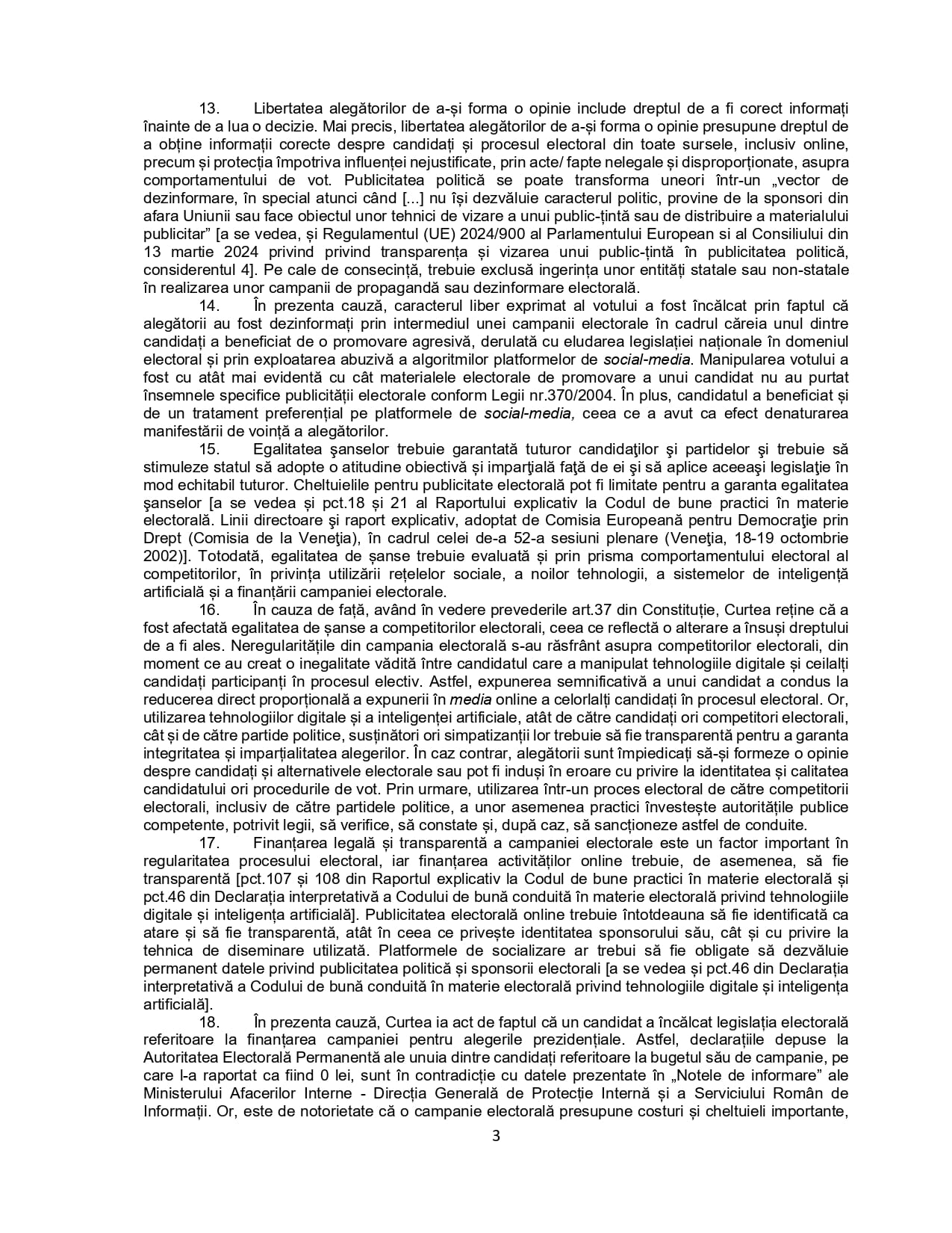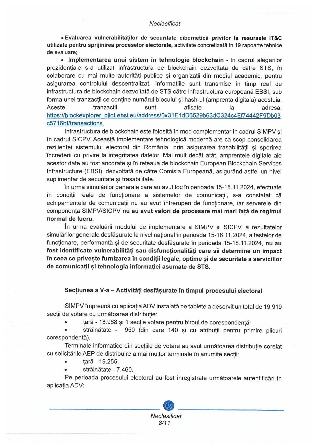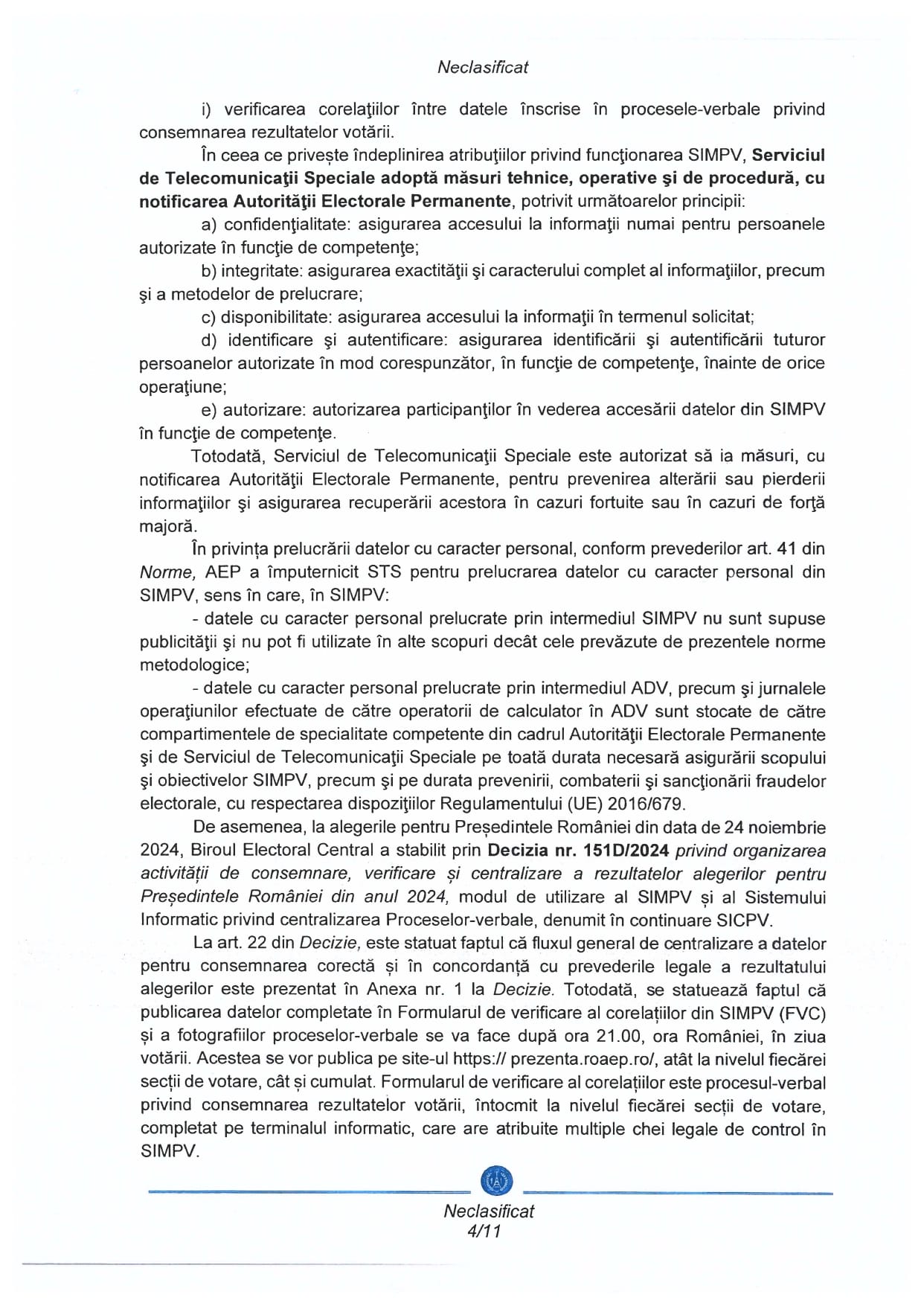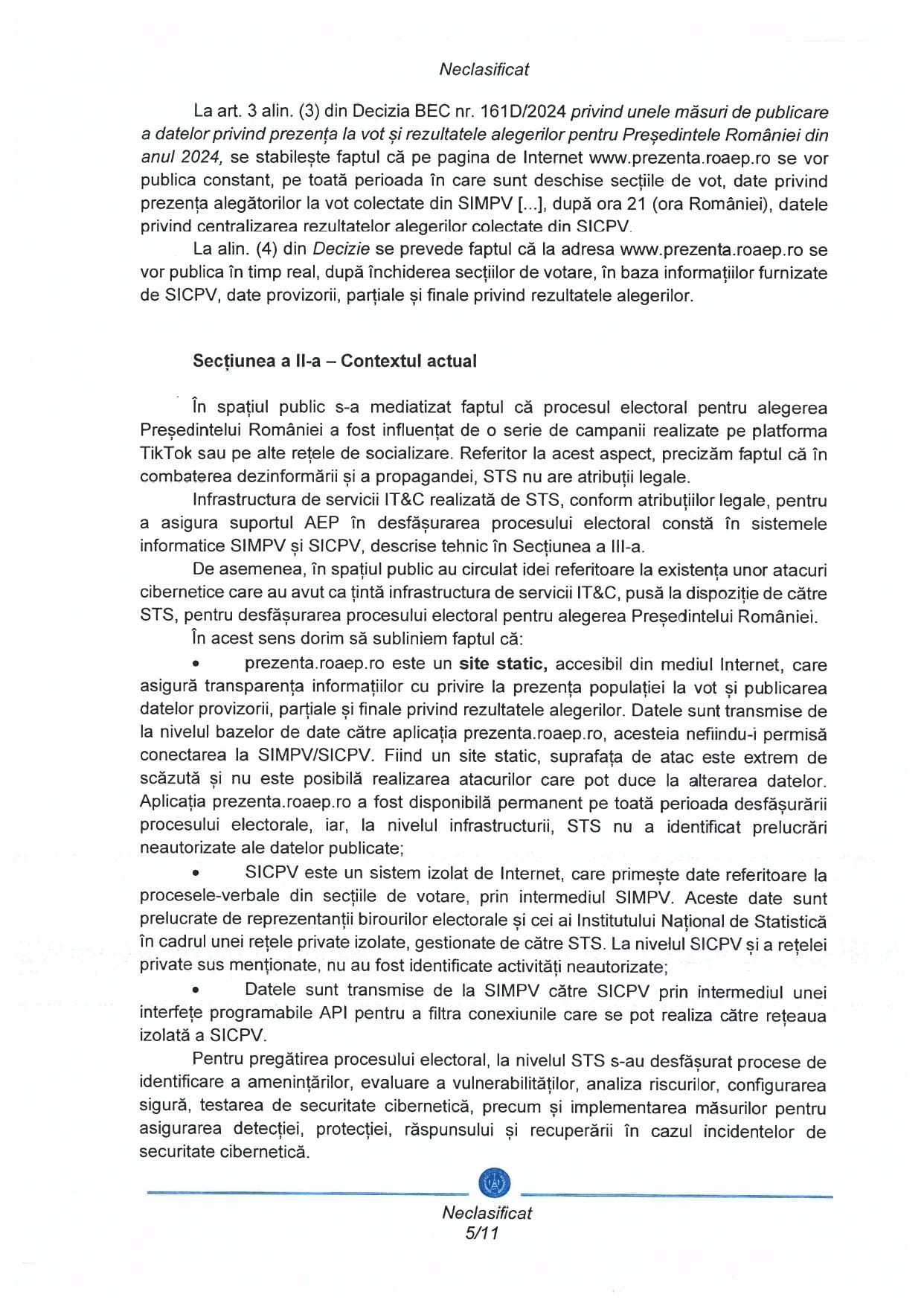 Terheș reported several irregularities. The first concerned the illegal continuation of the electoral campaign online on November 23-24, including on election day. The second involved the use of bots and automated mechanisms to promote candidate Călin Georgescu. The third referred to an alleged fraudulent transfer of votes from candidate Ludovic Orban to Elena-Valerica Lasconi in three polling stations. He also cited the existence of a disproportionate number of null votes (223,132) compared to the difference between candidates, as well as irregular voting on supplementary lists.