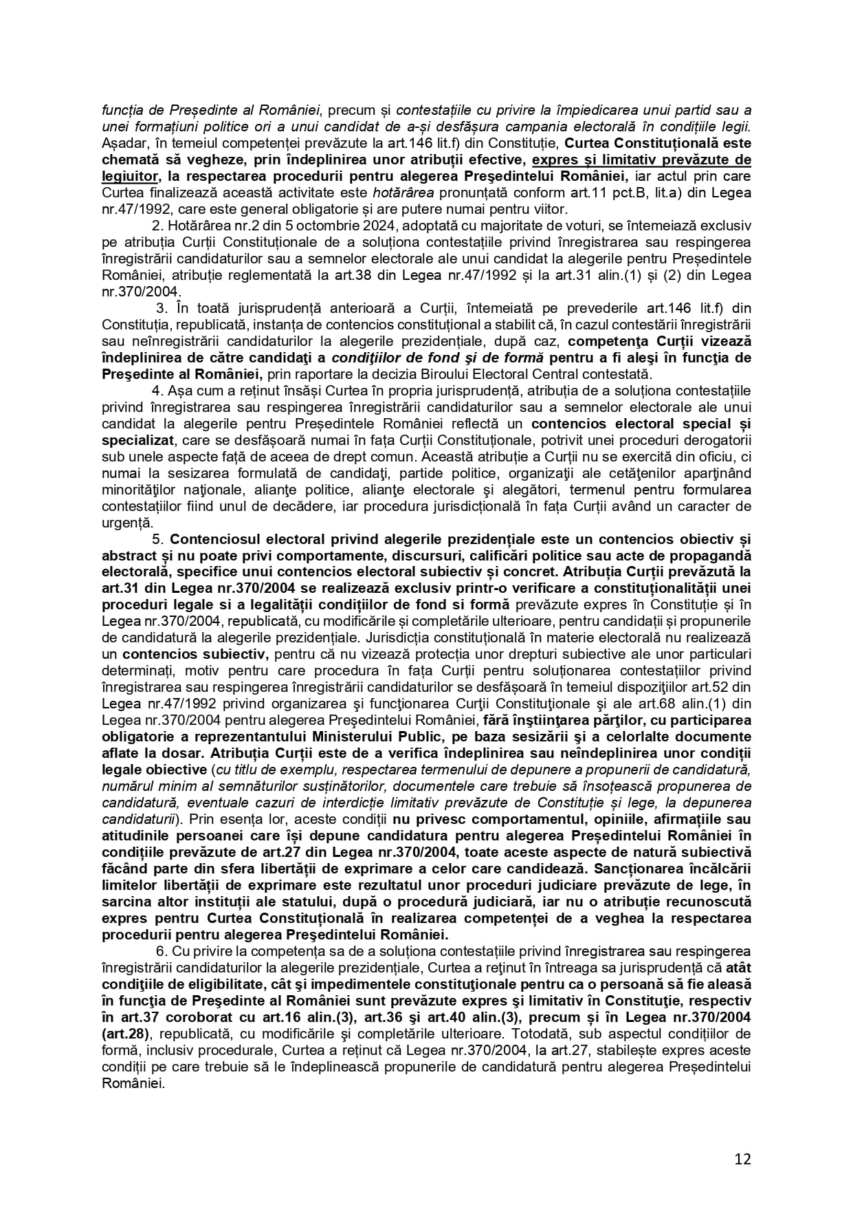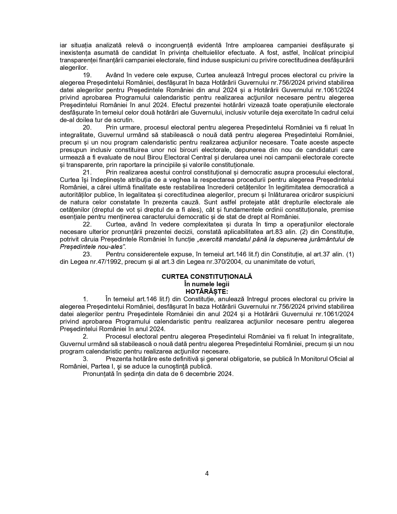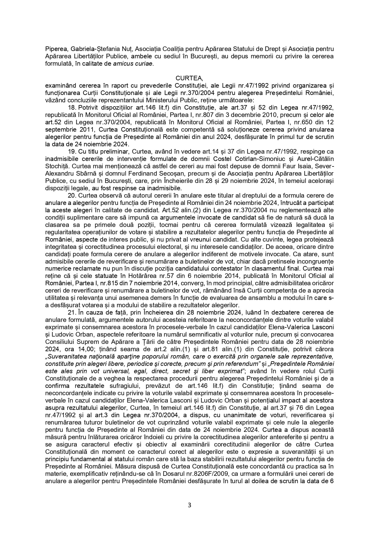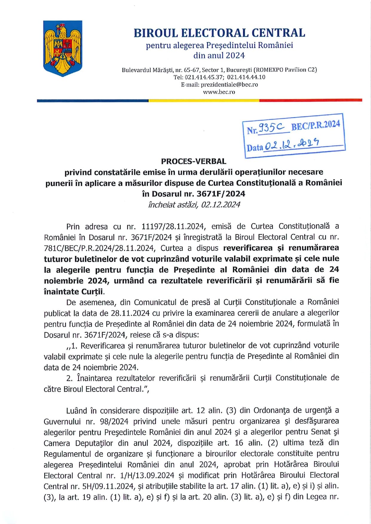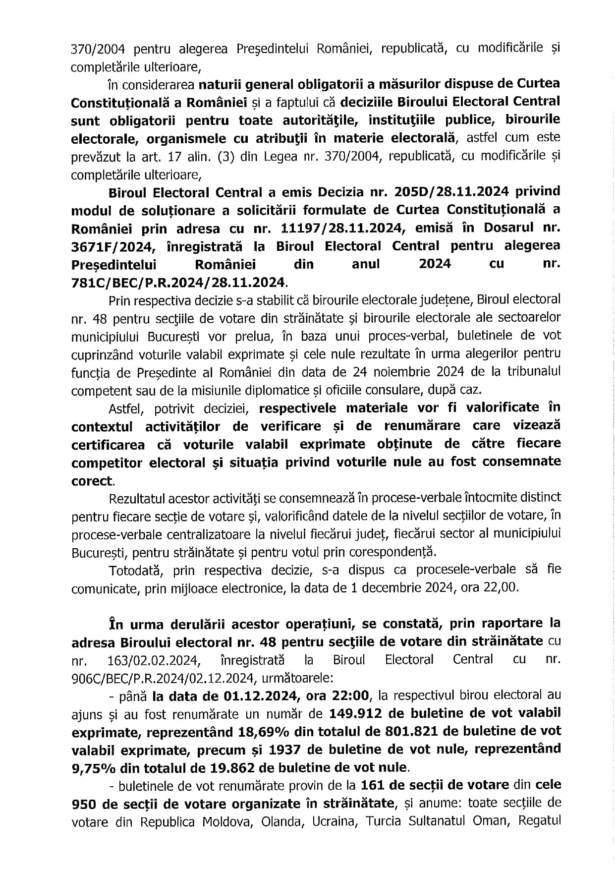 Decision 31/2024 validating the first round of the presidential elections, issued immediately after the rejection of Terhes's request, on December 2, 2024.