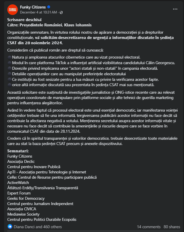 Furthermore, the press has begun to popularize the idea that Calin Georgescu is actually a candidate who obtained votes through the support of a state actor, who allegedly used bots to bolster his campaign.