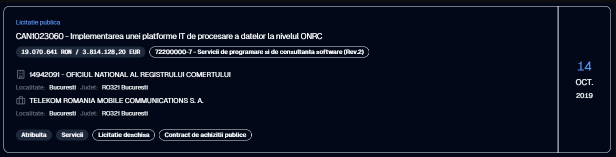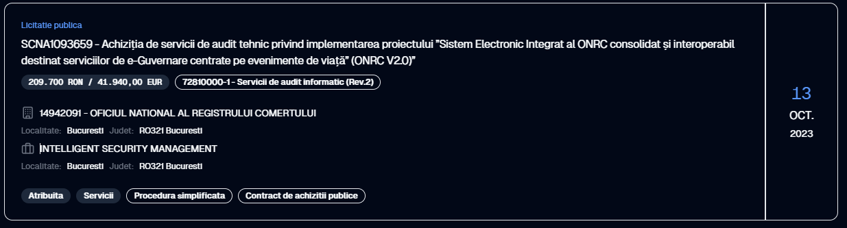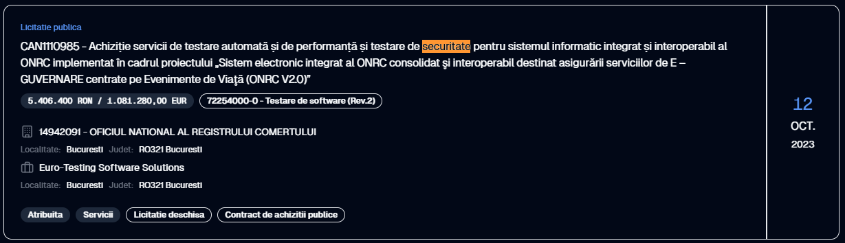 Additionally, ONRC had contracts with 2 testing entities, the second for a smaller amount, 50,000 RON, designated as a "technical audit," from a company that conducts pentesting. Does ONRC realize that the first service was poorly executed?