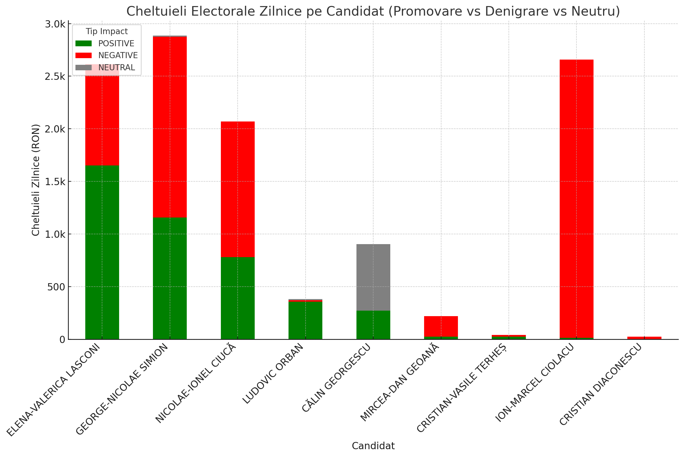 We can see that the most disparaged candidates have their expenditures for defamation listed in descending order. ION-MARCEL CIOLACU, GEORGE SIMION, NICOLAE-IONEL CIOCA, yes ELENA-LASCONI.