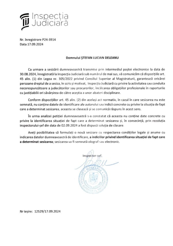 I propose below to make the interaction with the Romanian state as transparent as possible, in order to compel the constructive resolution of issues and the implementation of measures to reduce the risk of similar problems persisting.